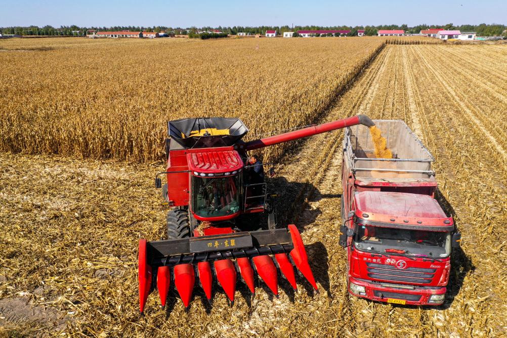 在内蒙古自治区通辽市科尔沁区钱家店镇前西艾力村的一块玉米地里,大型籽粒收割机来回穿梭,将金黄饱满的玉米粒装进运粮车。“今年我们千亩方玉米亩产达到了1246公斤,万亩片达到了1183公斤。在春旱、夏季多云寡照的情况下能达到这个水平,还是科学种植起了大作用。”通辽市汇民盛丰农民专业合作社理事长马忠臣说。