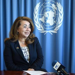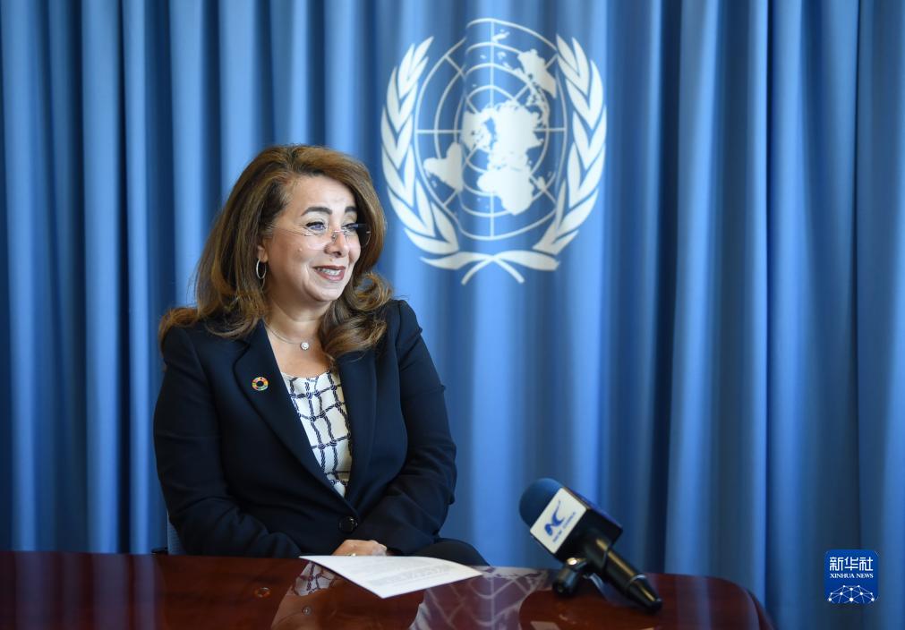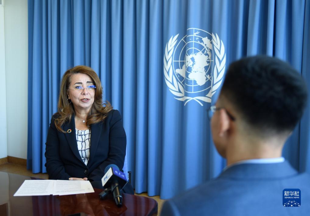 10月13日,在奥地利首都维也纳,联合国维也纳办事处总干事加达·瓦利接受记者采访。新华社记者 贺灿铃 摄