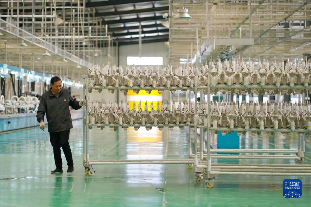10月16日,平乡县一家童车生产企业的工人在运输童车车架。