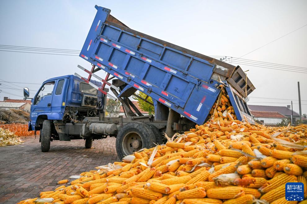 10月13日,通辽市科尔沁区丰田镇车力花村村民驾驶农用车将收获的玉米运到家中。
