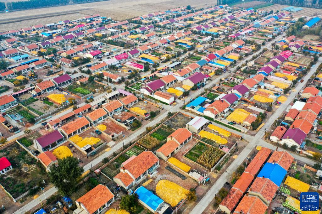 通辽市科尔沁区丰田镇车力花村村民的小院里处处晾晒着玉米(10月13日摄,无人机照片)。