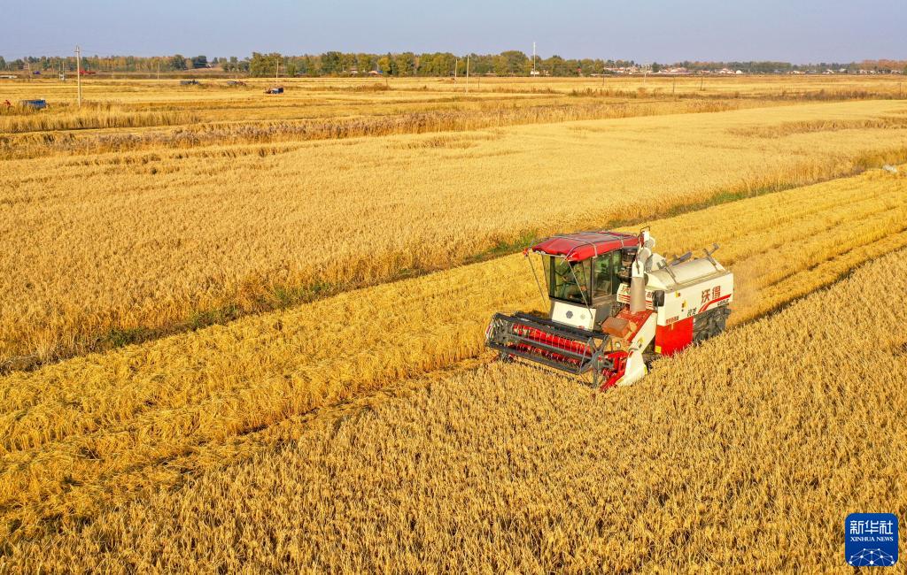 在通辽市科尔沁左翼后旗,水稻也收获过半。今年夏季,科尔沁左翼后旗多个乡镇遭遇洪涝灾害,但得益于提前疏通排干渠,当地水稻产量稳中有升。