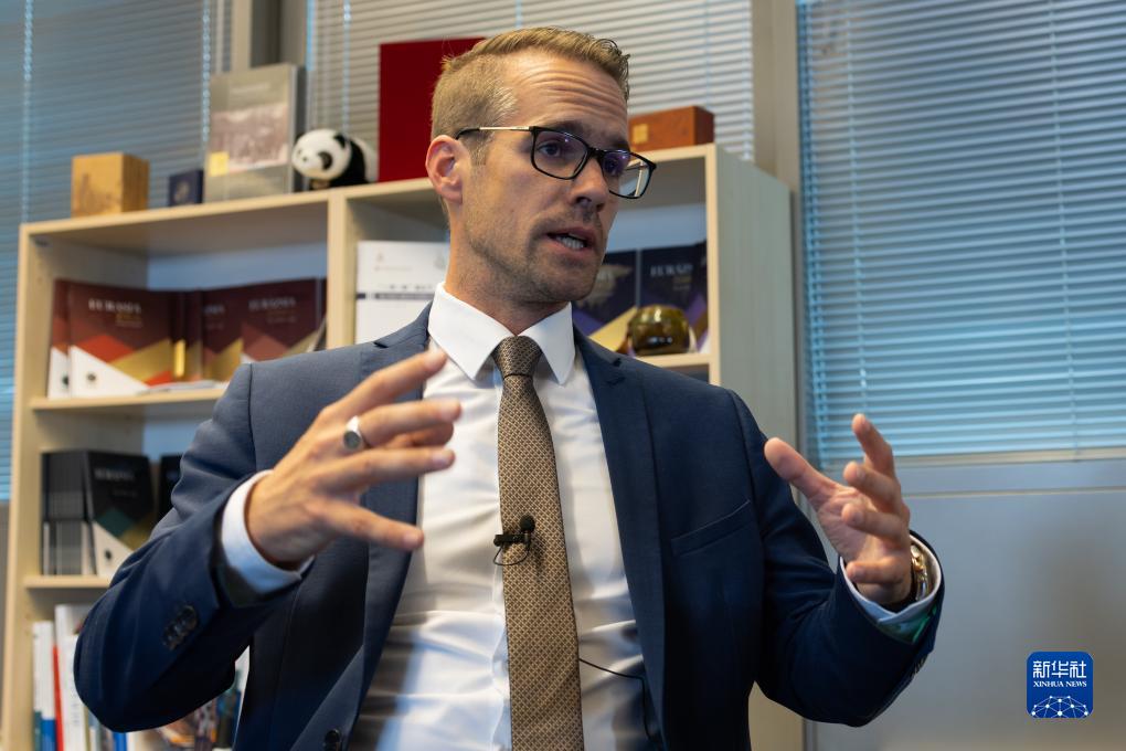 10月13日,匈牙利约翰·冯·诺伊曼大学欧亚中心主任霍尔瓦特·列文特在匈牙利布达佩斯接受新华社记者专访。新华社发(弗尔季·奥蒂洛摄)