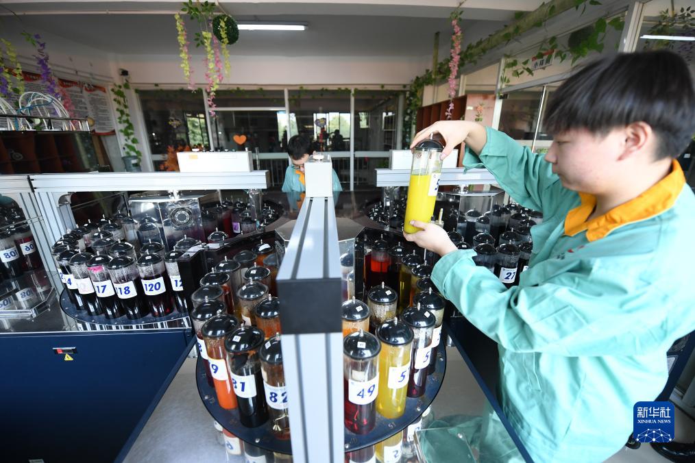 10月17日,浙江越新印染有限公司的技术人员在进行染料化料工作。