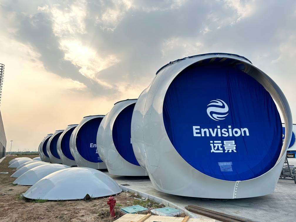 走进位于山东乳山市的远景零碳产业园内,各厂区井然有序,生产线满负荷运行。一个个像是巨大太空舱的海上风力发电机组主机,从生产线组装完成后陈列在厂区里,非常壮观。