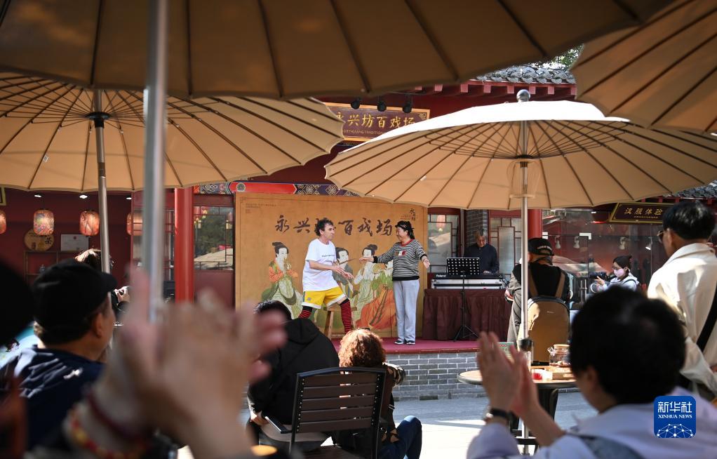 10月16日,观众在西安永兴坊欣赏默剧表演。