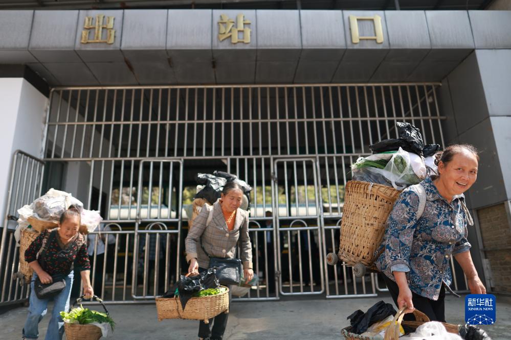 10月17日,5630次列车到达桐梓站后,村民携带农产品下车。