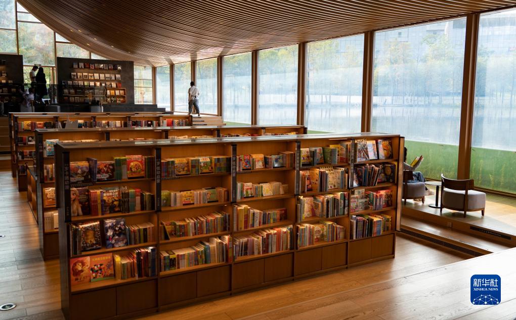 这是位于四川天府新区兴隆湖畔的中信书店一景(10月16日摄)。书店四周被碧水青草环绕,临湖一侧是一面玻璃幕墙,一直延伸至水下。