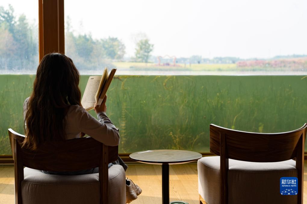 10月16日,市民在位于四川天府新区兴隆湖畔的中信书店读书。