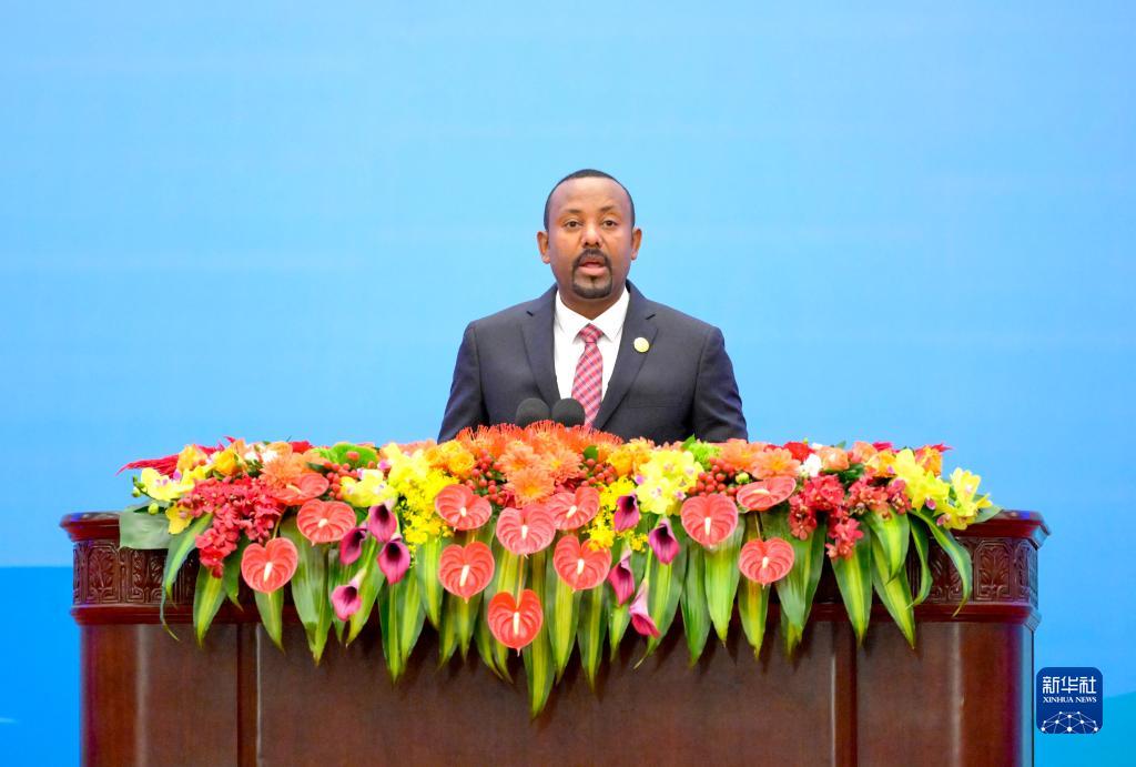 10月18日,第三届“一带一路”国际合作高峰论坛开幕式在北京举行。这是埃塞俄比亚总理阿比在开幕式上致辞。新华社记者 李学仁 摄
