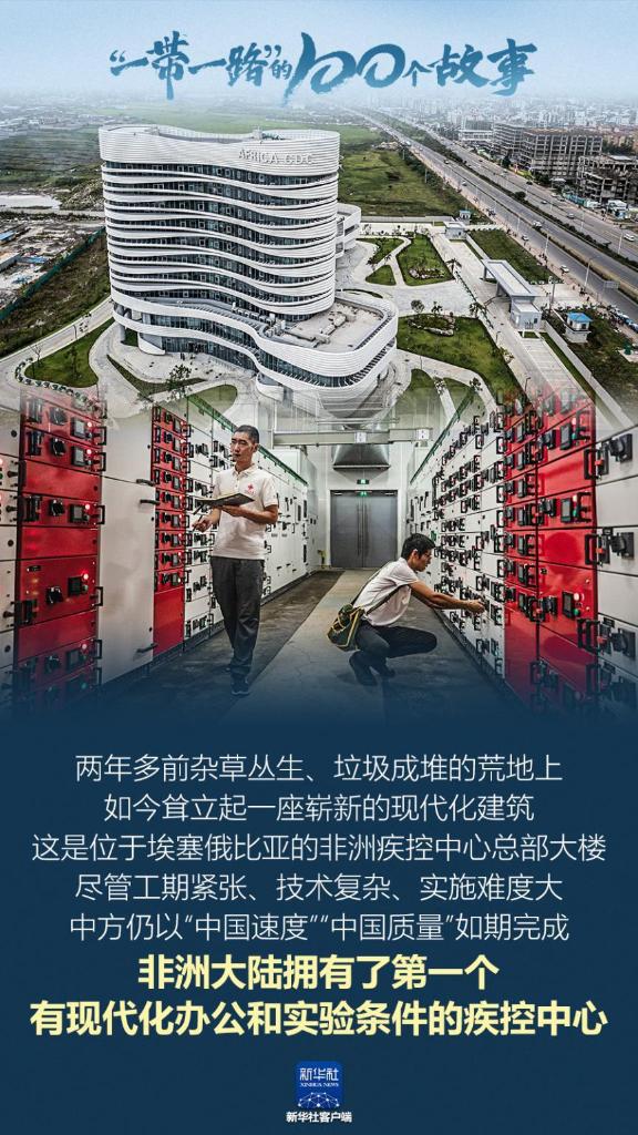 两年多前杂草丛生、垃圾成堆的荒地上,如今耸立起一座崭新的现代化建筑,这是位于埃塞俄比亚的非洲疾控中心总部大楼。尽管工期紧张、技术复杂、实施难度大,中方仍以“中国速度”“中国质量”如期完成。非洲大陆拥有了第一个有现代化办公和实验条件的疾控中心。