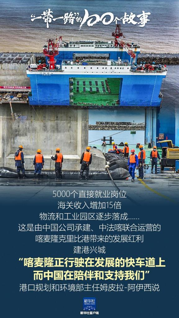 5000个直接就业岗位、海关收入增加15倍、物流和工业园区逐步落成……这是由中国公司承建、中法喀联合运营的喀麦隆克里比港带来的发展红利。建港兴城,“喀麦隆正行驶在发展的快车道上,而中国在陪伴和支持我们。”港口规划和环境部主任姆皮拉-阿伊西说。(记者:王泽)