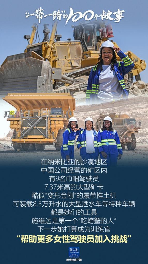 在纳米比亚的沙漠地区,中国公司经营的矿区内,有9名巾帼驾驶员。7.37米高的大型矿卡、酷似“变形金刚”的履带推土机、可装载8.5万升水的大型洒水车等特种车辆都是她们的工具。施维达是第一个“吃螃蟹的人”,下一步她打算成为训练官,“帮助更多女性驾驶员加入挑战”。(记者:陈诚、余音潼)