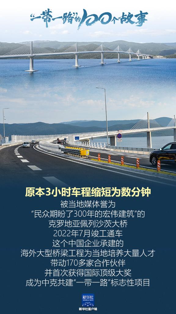 原本3小时车程缩短为数分钟……被当地媒体誉为“民众期盼了300年的宏伟建筑”的克罗地亚佩列沙茨大桥,2022年7月竣工通车。这个中国企业承建的海外大型桥梁工程为当地培养大量人才,带动170多家合作伙伴,并首次获得国际顶级大奖,成为中克共建“一带一路”标志性项目。