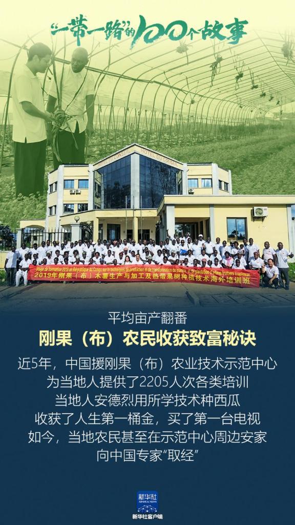 平均亩产翻番,刚果(布)农民收获致富秘诀。近5年,中国援刚果(布)农业技术示范中心为当地人提供了2205人次各类培训。当地人安德烈用所学技术种西瓜,收获了人生第一桶金,买了第一台电视。如今,当地农民甚至在示范中心周边安家,向中国专家“取经”。(记者:罗江)