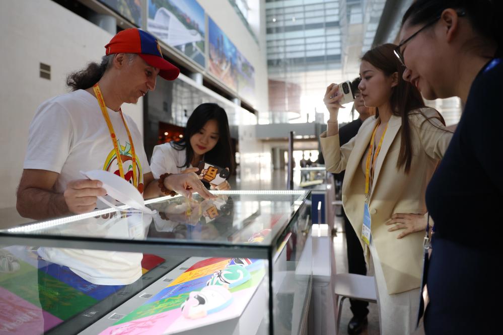 在论坛新闻中心科技文化互动展示区,哈萨克斯坦BAQ通讯社记者古尔然·拉曼库洛娃饶有兴致地体验着手绘彩塑京剧脸谱。在这里,除了彩塑京剧脸谱,还有木版水印、景泰蓝制作等“非遗”体验项目,外籍记者可近距离感受中国传统文化的魅力。