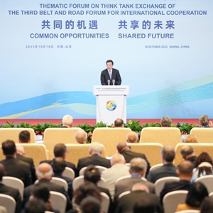 傅华表示,18日上午,第三届“一带一路”国际合作高峰论坛开幕式在北京举行,习近平主席发表了主旨演讲,全面回顾了共建“一带一路”国际合作取得的丰硕成果,深刻总结了过去十年形成的宝贵经验,宣布中国支持高质量共建“一带一路”的八项行动,包括将同共建“一带一路”各国加强智库等领域的多边合作平台建设。习近平主席的主旨演讲,为推动共建“一带一路”进入高质量发展的新阶段擘画新蓝图,也为进一步深化“一带一路”智库交流合作提供了重要指引。