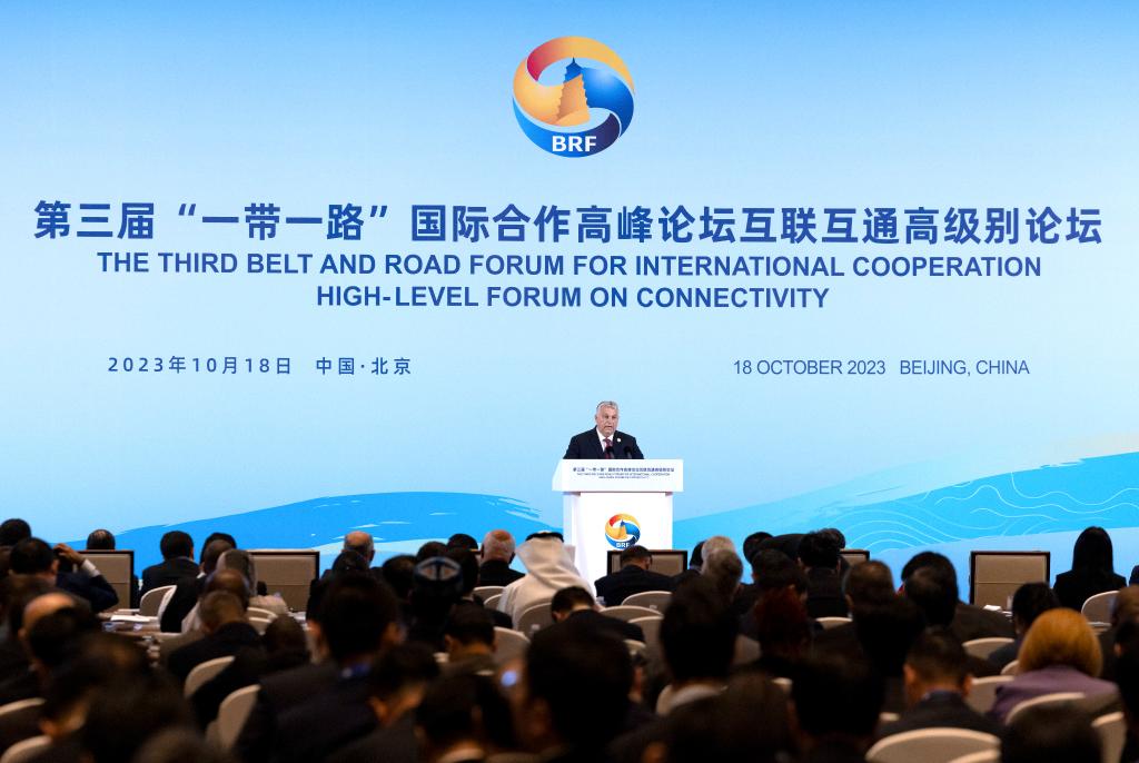 10月18日,第三届“一带一路”国际合作高峰论坛在北京举办高级别论坛,嘉宾围绕互联互通、绿色发展、数字经济主题进行深入交流。这是互联互通高级别论坛现场。新华社记者 金立旺 摄