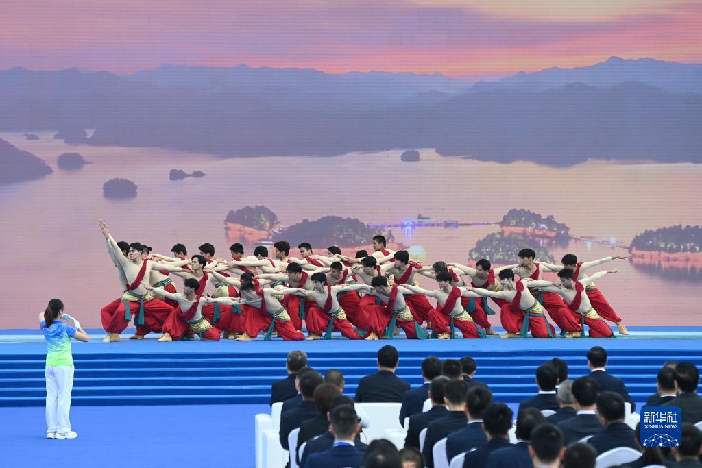 10月19日,演员在启动仪式前表演舞蹈《千岛扬帆》。