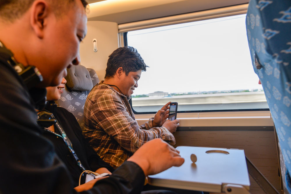 每一次列车时速达到350公里,乘客、工作人员或者媒体记者都会一起鼓掌欢呼,让我感受到了这个国家人民的乐观和热情。印尼人民也非常喜欢用手机记录下自己乘坐高铁的经历,并分享到社交媒体和视频网站,或是直接在高铁上开直播,让更多人感受雅万高铁的魅力。