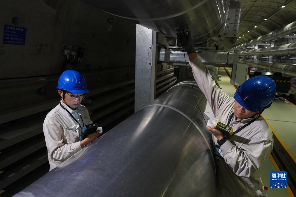 10月19日,国网江苏电力工作人员在苏通GIL管廊对运行中的电气设备进行带电检测。