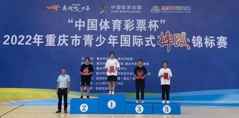 ↑钟欣悦(中)获得了2021年、2022年和2023年重庆市青少年国际式摔跤锦标赛等多个省市级比赛的冠军。