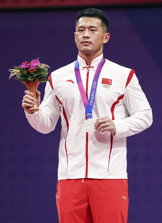 10月5日,中国选手李一鸣在颁奖典礼上。新华社记者 吴壮 摄