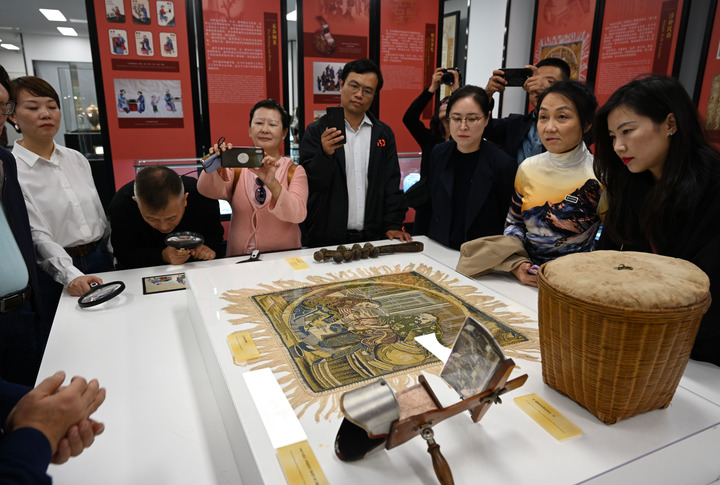 10月17日,“一带一路与万里茶道”展在京开幕,观众在参观展览。新华社记者 金良快 摄