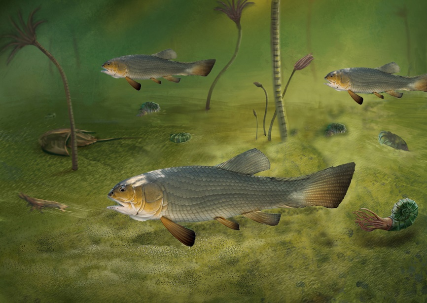 圆尾滇东鱼生态复原图。(中国科学院古脊椎所供图)