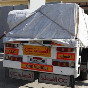 10月21日,在拉法口岸埃及一侧,装载有人道援助物资的货车准备通过拉法口岸。新华社发(艾哈迈德·戈马摄)