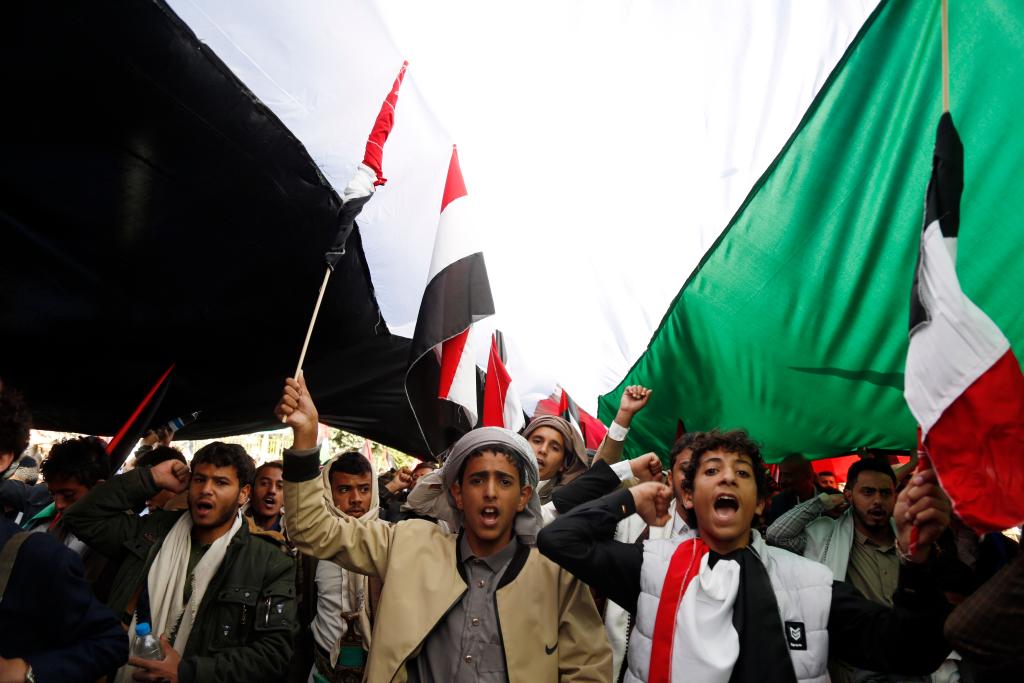 10月20日,在也门首都萨那,人们参加声援巴勒斯坦的游行。新华社发(穆罕默德·穆罕默德摄)