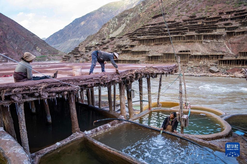 西藏昌都市芒康县纳西民族乡位于澜沧江畔,当地从唐代开始制盐,距今已延续1300余年。盐田在澜沧江两岸依山而建,由多根木柱搭架,架上用透水性强的泥土铺成平面夯实。当地村民仍保持着原始的手工晒盐方式,他们从澜沧江畔的盐井、盐池中取出卤水倒入盐田,经阳光蒸晒、风干,结晶成盐。远远望去,盐田错落有致,景色奇美。
