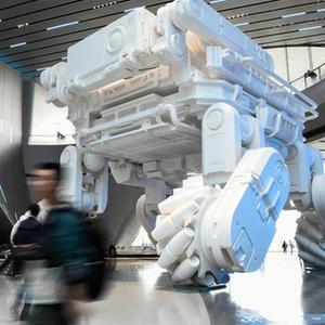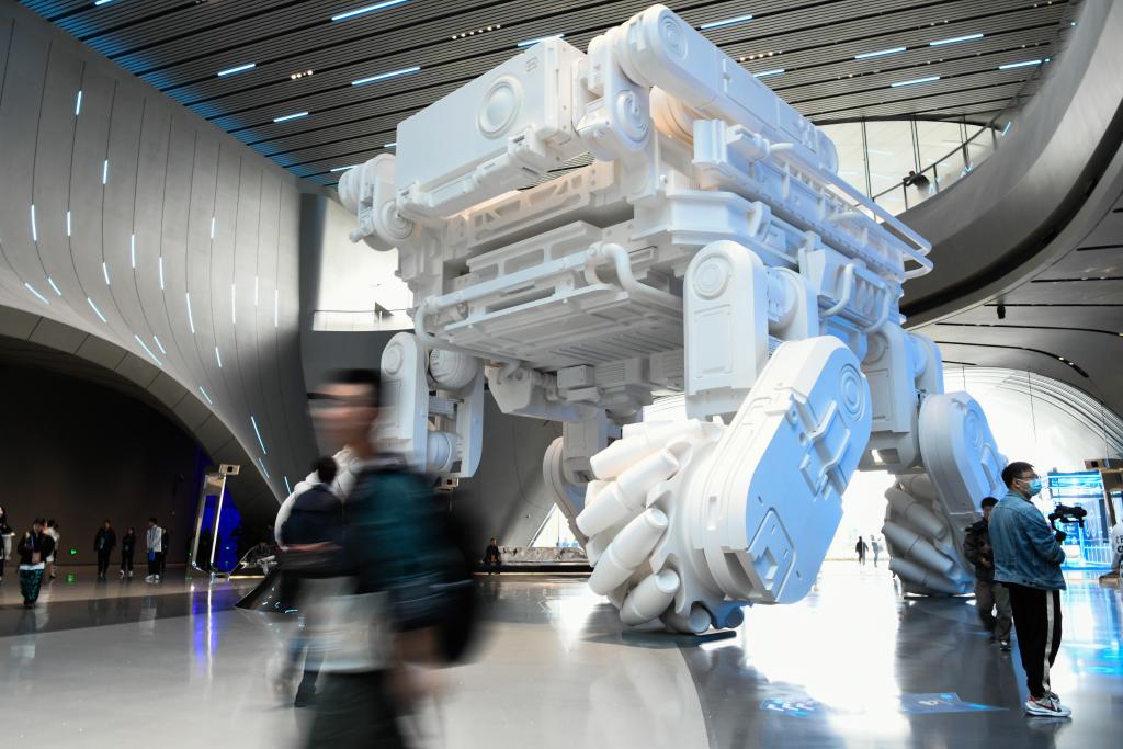 这是10月18日在成都科幻馆拍摄的巨型雕塑。新华社记者 唐文豪 摄