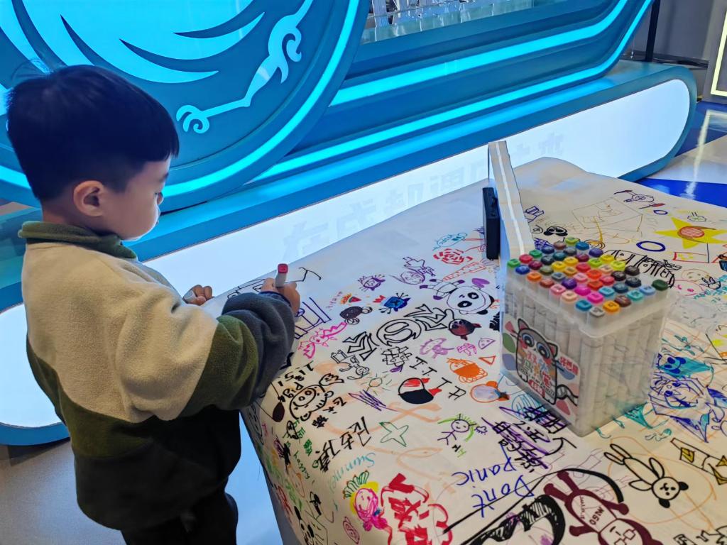 10月18日,一位小朋友在成都科幻馆内参与科幻绘画体验活动。新华社记者 董小红 摄