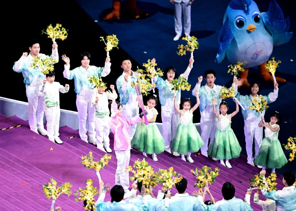 10月22日,最后一棒火炬手徐佳玲在开幕式上。新华社记者贝赫摄