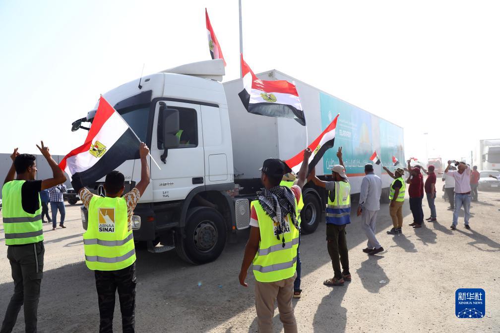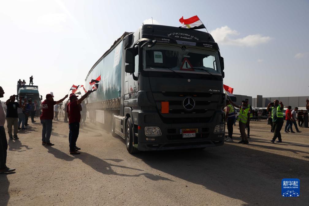 以色列和巴勒斯坦本月7日以来爆发新一轮军事冲突,造成大量人员伤亡。21日,首批20辆装载人道救援物资的卡车从拉法口岸埃及一侧进入加沙地带。