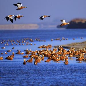站在黄河岸边遥望,夕阳西下,数千只候鸟从银河村万亩湿地上空掠过,远处的贺兰山薄云缭绕,秋水共长天一色,不禁让人陶醉。