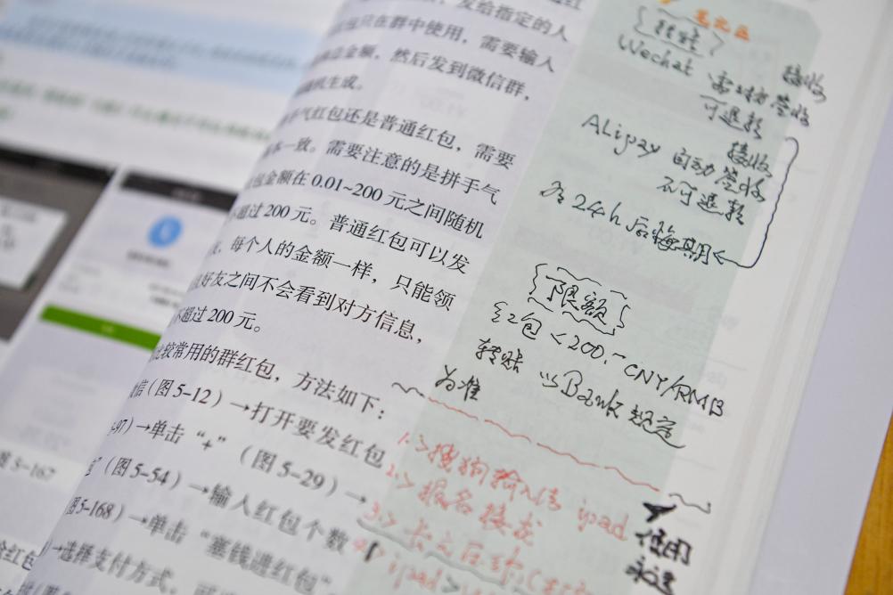 这是一位老年学员在手机操作教材上写下的笔记(10月19日摄)。新华社记者 杨晨光 摄