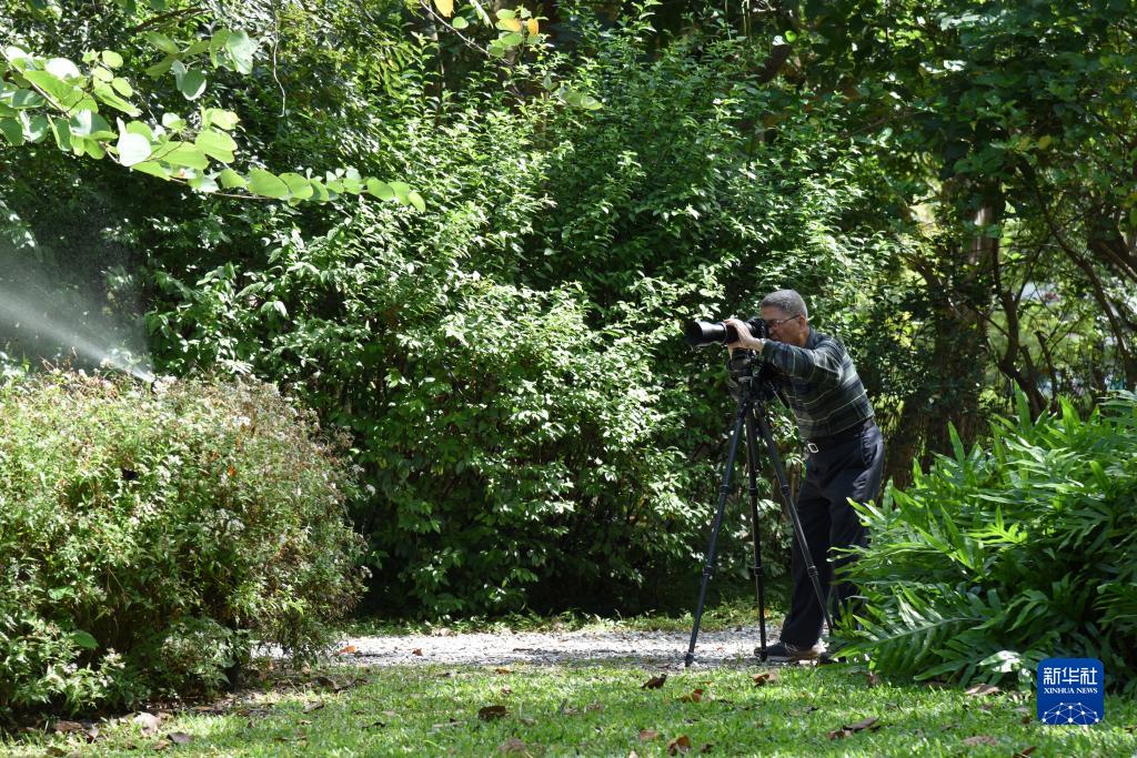 10月23日,一位老年人在台北大安森林公园内摄影。新华社记者 刘斐 摄
