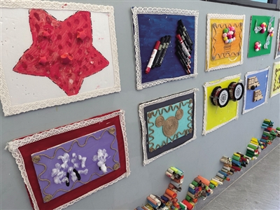 广西南宁市兴宁区高尔德托育园老师与孩子共同创作的作品。记者 陈一帆 摄