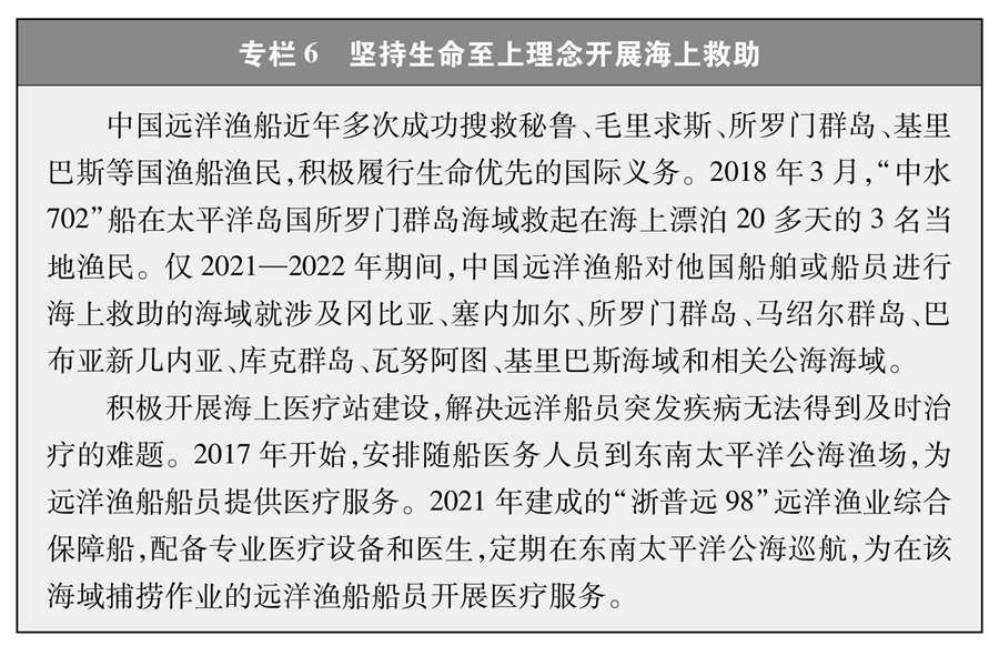 中国持续提升远洋渔业基础设施现代化水平,着眼于安全、环保、可持续和劳工保护等目标,在控制远洋渔船规模的同时,不断改善渔船安全和船员生活环境。