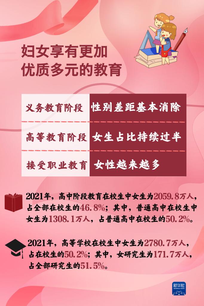 党的十八大以来,党对妇女儿童工作的领导全面加强,妇女参与经济发展的舞台更为广阔,参与决策和管理更加广泛深入,享有更加优质更加多元的教育……新时代我国妇女事业取得了历史性成就,发生历史性变革。