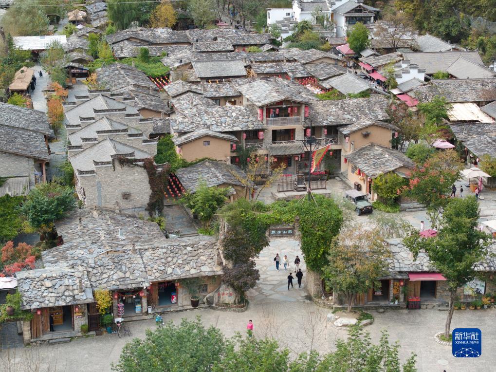 朱家湾村终南山寨民俗文化村(10月21日摄,无人机照片)。