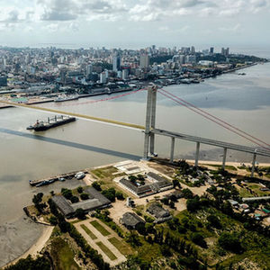 这是2019年4月8日在莫桑比克首都马普托拍摄的马普托大桥(无人机照片)。新华社记者 张宇 摄