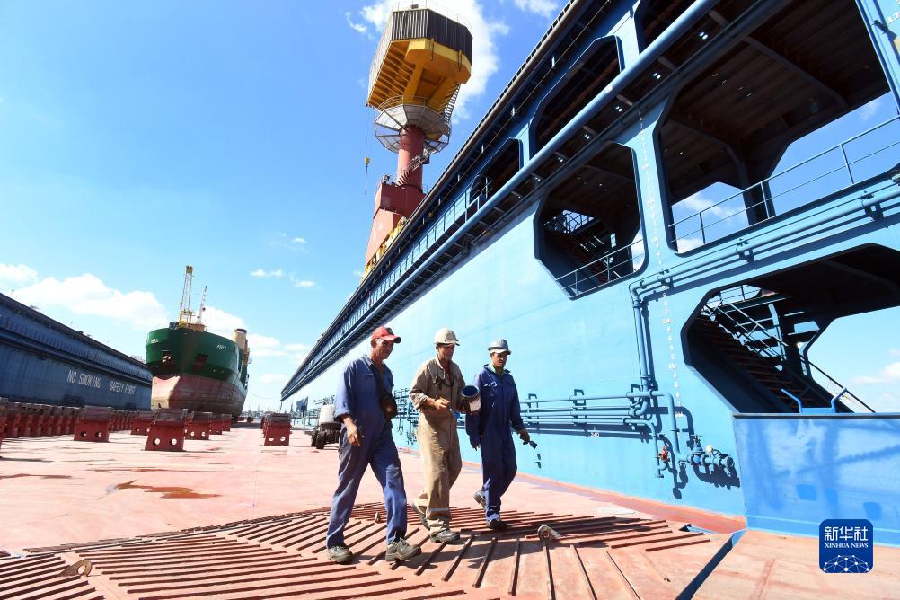 10月24日,在古巴哈瓦那港,工人走在浮船坞甲板上。新华社发(华金·埃尔南德斯 摄)