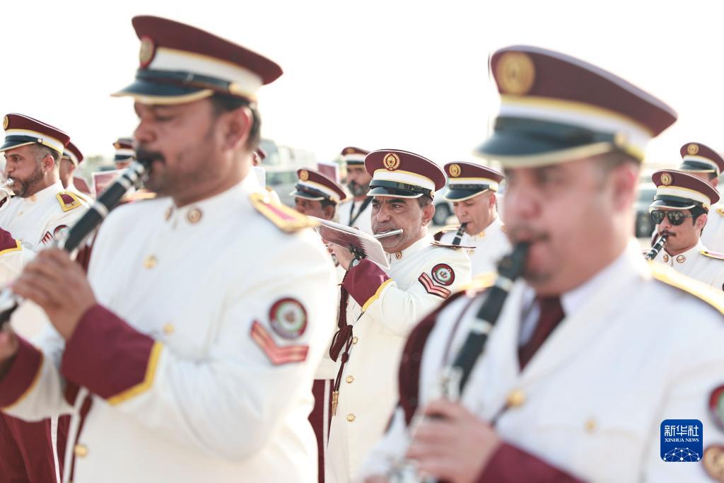 10月24日,中国海军第44批护航编队抵达卡塔尔进行友好访问,卡塔尔海军军乐团奏响迎宾曲欢迎编队到访。新华社发(方思航摄)