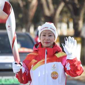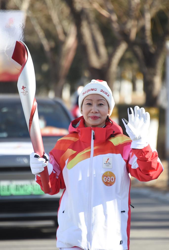 2022年2月4日,潘瑞凤在北京冬奥会火炬传递中。新华社记者 任超 摄
