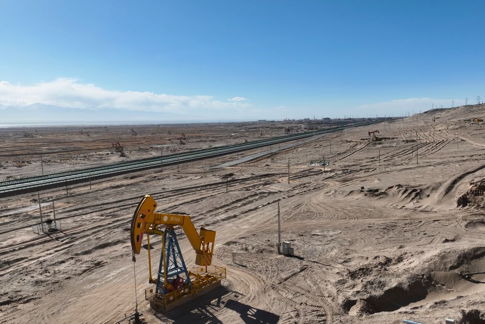 图为穿越采油区的黄茫公路路段。(中铁十局供图)