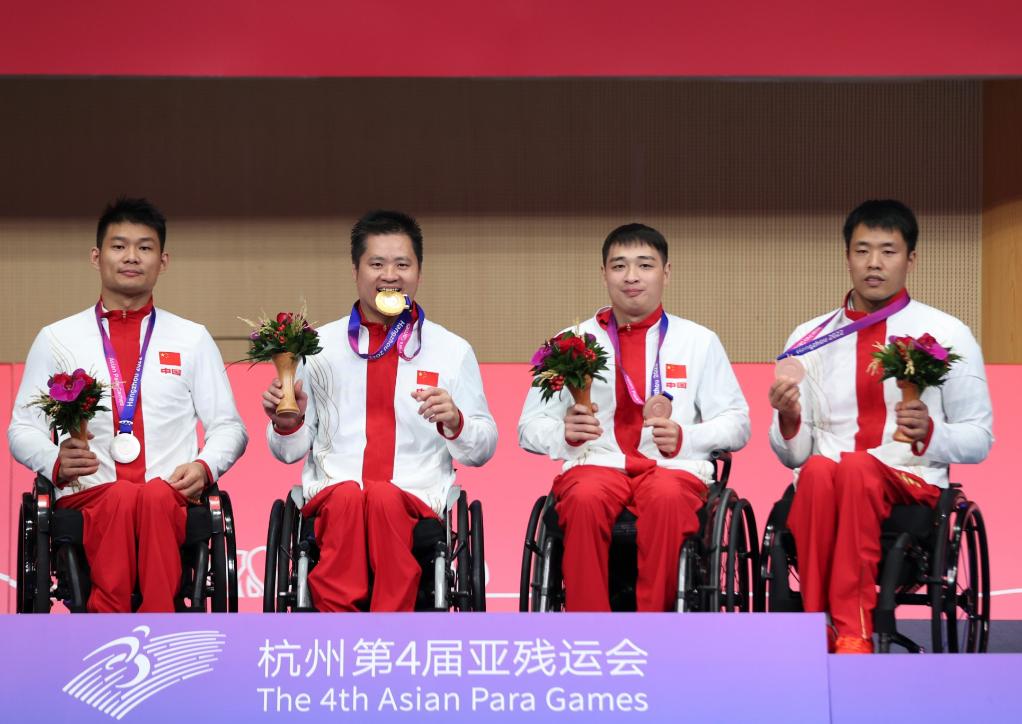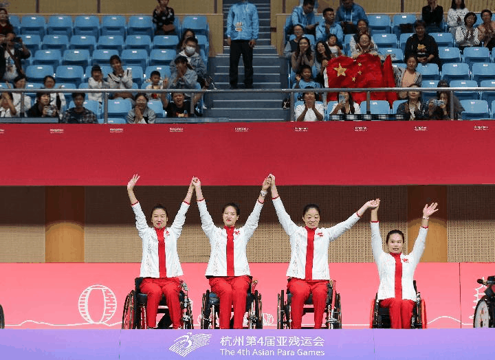 截至杭州亚残运会轮椅击剑项目第四个比赛日,中国队已斩获18枚金牌中的10枚,并包揽了四个小项的全部奖牌——1金1银2铜。四面五星红旗已在杭州电子科技大学体育馆内多次升起。