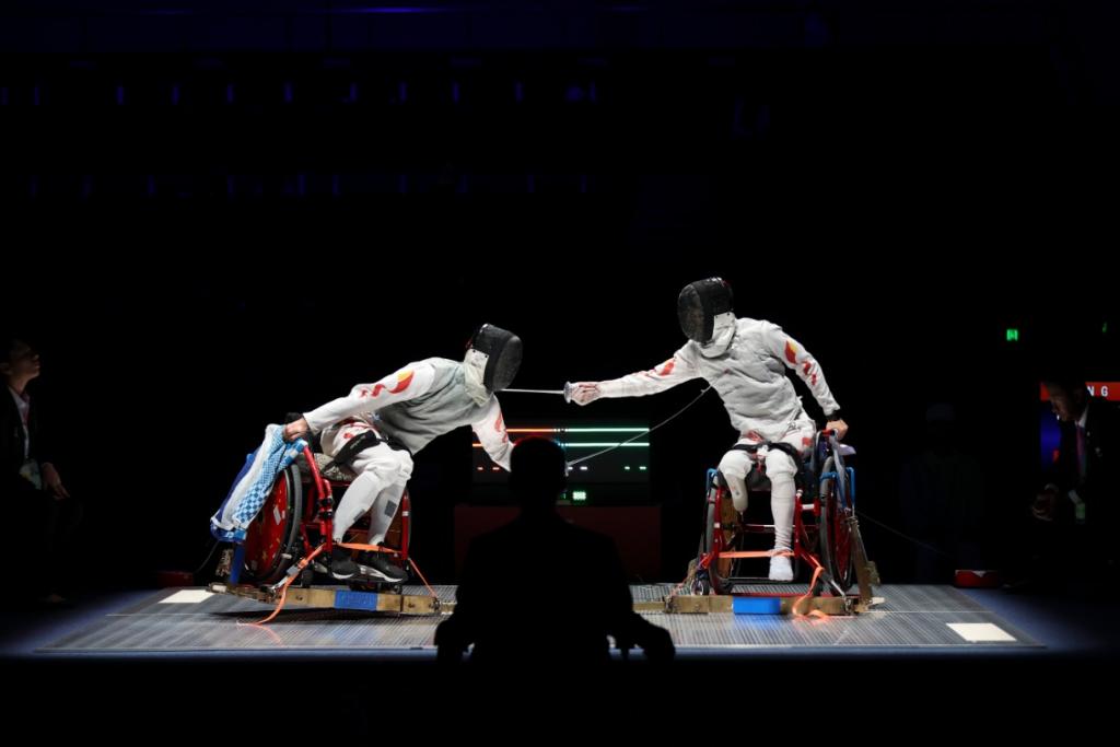在25日晚进行的杭州亚残运会男子花剑个人B级金牌赛中,“老大哥”胡道亮和冯彦可就进行了一场精彩厮杀,两人你追我赶,嘶吼声燃爆全场,最终胡道亮以15:14击败较为年轻的冯彦可,斩获金牌。